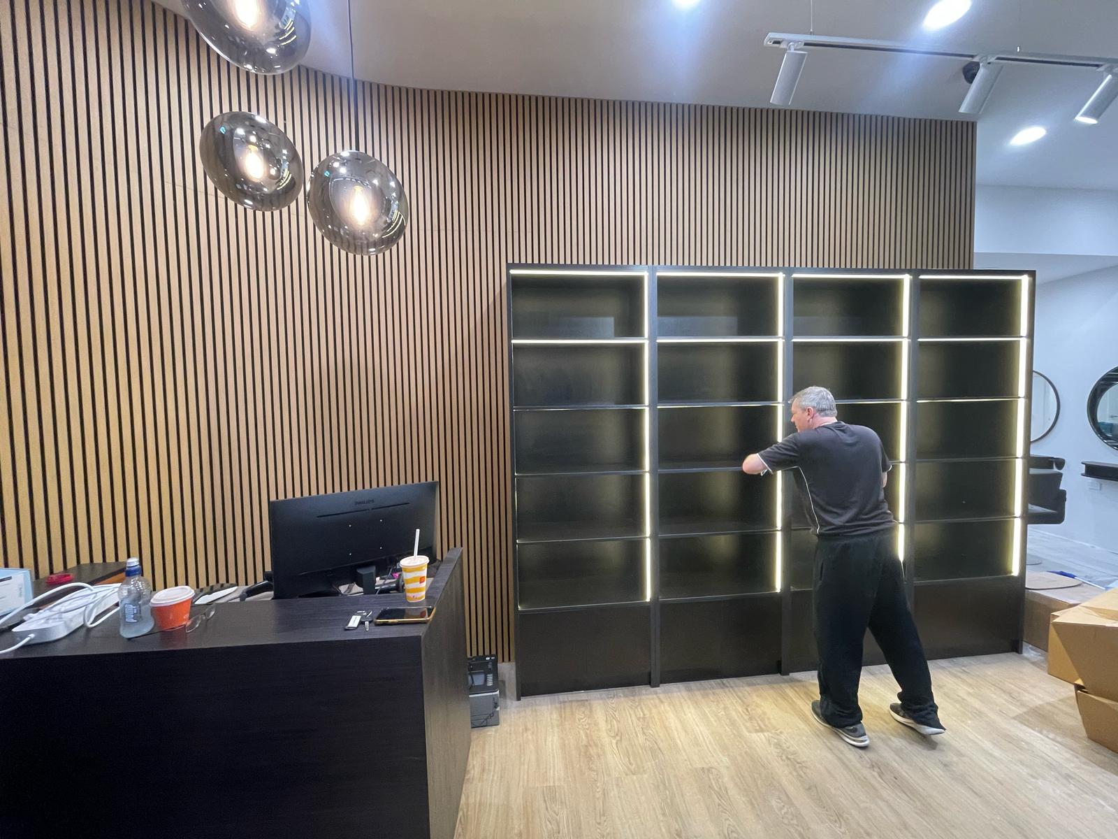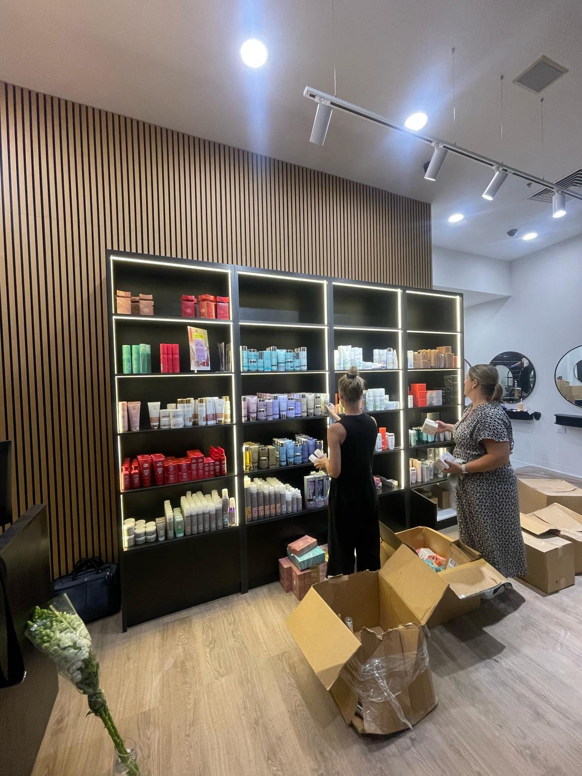 This branch of Vivo is located in Bayfair, Tauranga. Using the tones of wood and warm lights, the space evolved to be an eccentric space. A complete eye-catcher. Being in a mall, the building hours for the salon were the “in-between” times, when the mall would not be operating. Despite this, our team really put up a show.